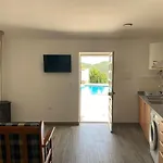 Separat toilet og et badekar samt et køleskab og køkkenudstyr er også tilgængelige på værelserne.